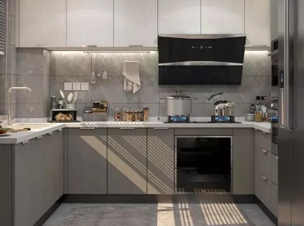 櫥柜,是指廚房中存放廚具以及做飯操作的平臺。使用明度較高的色彩搭配,由五大件組成,柜體,門板,五金件,臺面,電器。整體櫥柜,亦稱“整體廚房”,是指由櫥柜、電器、燃?xì)饩摺N房功能用具四位一體組成的櫥柜組合。