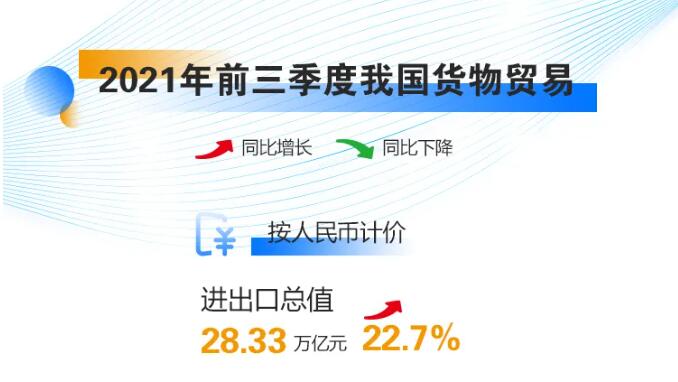 【導讀】您正在閱讀的是關于【外貿數據】2021年前三季度我國進出口總值28.33萬億元,同比增長22.7% !的內容,本文由開森進口代理小編整理編寫,希望能對您有所幫助!