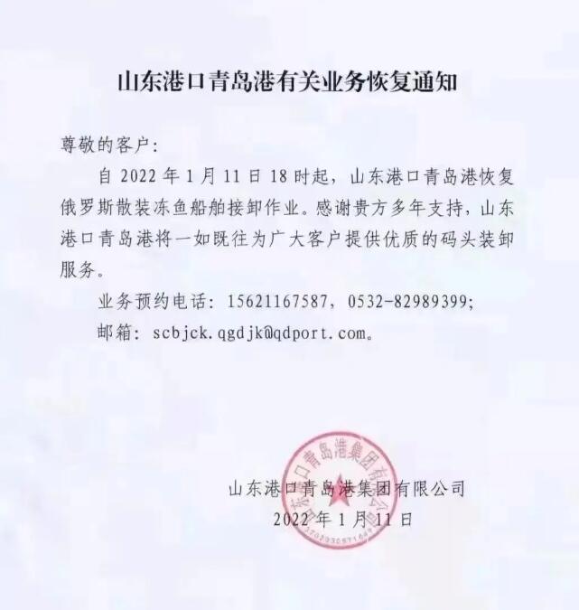 青島港也宣布重新對(duì)俄羅斯散貨船開(kāi)放,2022狹鱈供應(yīng)有望緩解!