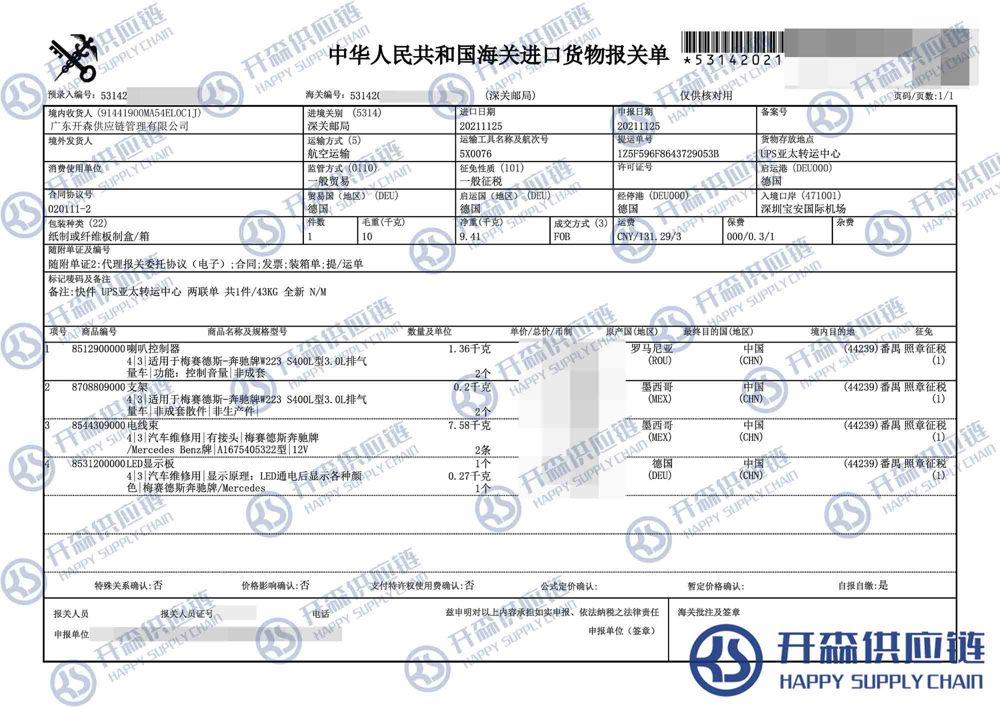 【本文結語】 上述就是喇叭控制器汽車配件進口報關代理案例【進口案例】的全部內容,希望能對您有所幫助,如有汽車配件進口報關上任何疑問及問題可隨時在線聯系我們或撥打 18002611553,開森供應鏈擁有豐富的汽車配件進口報關操作經驗及案例,10余年進口經驗為您所用,各類進口疑難都能為您一一解答及協助快速處理解決!