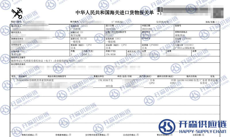 【導讀】您正在閱讀的是關于廣州機場營養素飲料濃漿進口報關清關代理服務【經典案例】的內容,本文由開森飲料進口報關代理小編整理編寫;